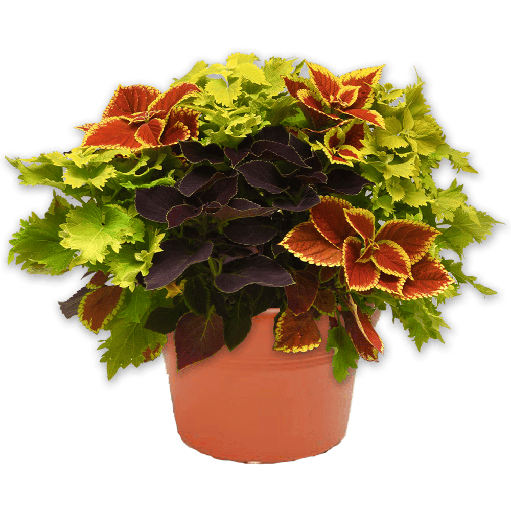 Set the mood for entertaining, relaxing, and enjoying the outdoors with this sun or shade loving combination planter which includes three color varieties of Coleus. Whether it’s a patio, porch, balcony, poolside, or fire-pit seating area, these planters make decorating your outdoor spaces a breeze.